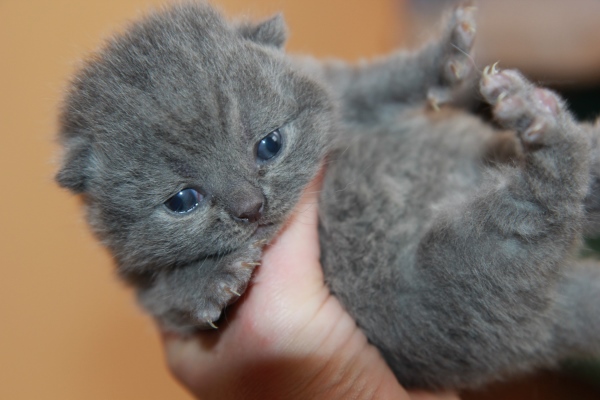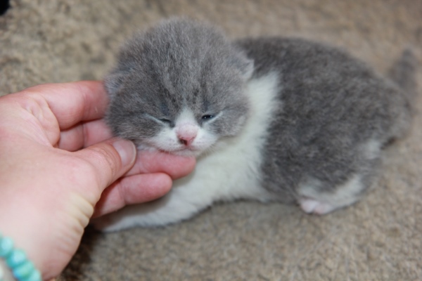 Tina is a blue British short hair female available for adoption. Tina's eyes are not yet completely opened.